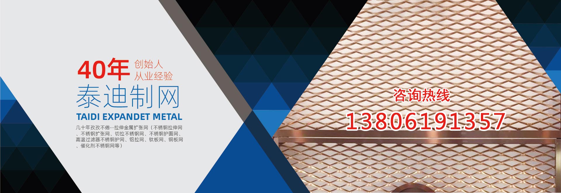 無錫泰迪環(huán)保科技有限公司生產(chǎn)不銹鋼拉伸網(wǎng)、不銹鋼擴(kuò)張網(wǎng)、切拉不銹鋼網(wǎng)、不銹鋼護(hù)面網(wǎng)、高溫過濾器不銹鋼護(hù)網(wǎng)、板式催化劑不銹鋼網(wǎng)、復(fù)合針孔鋁板、微孔鋁板拉網(wǎng)、微孔吸